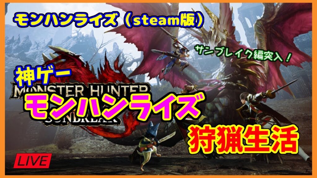 今回はswitch、PS5、に続き3機種目!steam版でまたまたモンハンライズサンブレイクで遊んでいきます。