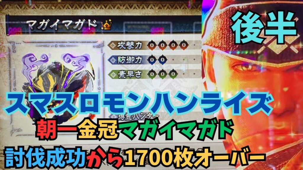 スマスロモンハンはリセット台で金冠モンスターを討伐して剥取りチャンスGでBONUSを沢山会得するのが出す秘訣です。
