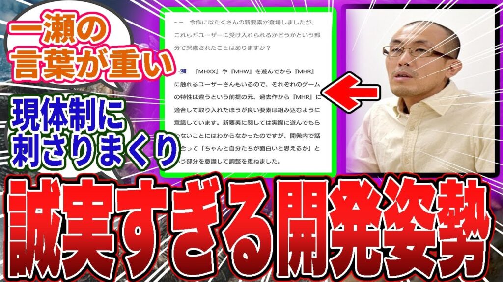 【話題】一瀬D「過去作の良い要素も取り入れる」開発秘話が再注目→「藤徳に全部聞かせたい」藤徳体制との落差に失望の声ww【モンハン/ワイルズ/反応集】
