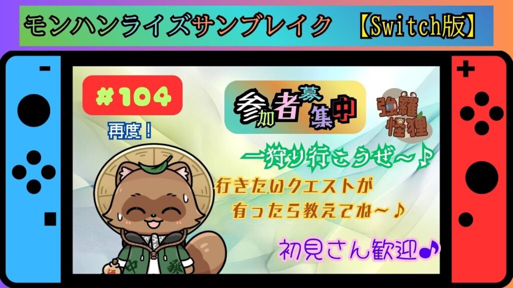 本日はモンハンライズサンブレイク【Switch版】をしていきま~す♪